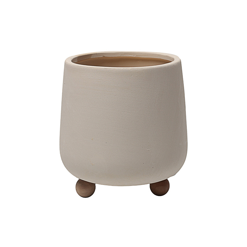 Name:Round Wooden Bead Base Ceramic Flowerpot